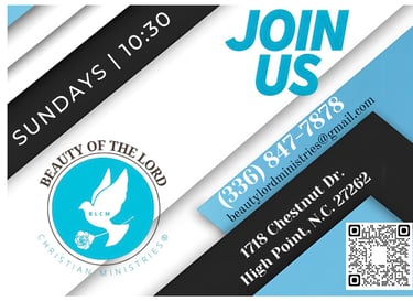 At Beauty of the Lord Christian Ministries, Inc. we live to share God's love through worship, fellowship, and service in High Point, NC.